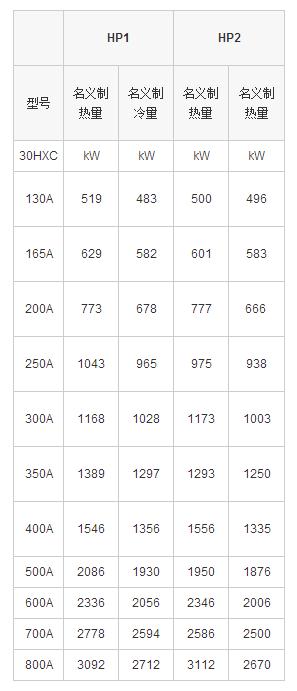 (6)提供制热最高热水出水温度47℃及60℃的两种机组HP1及HP2,满足不同项目应用需要